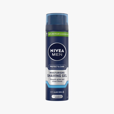 NIVEA MEN Protect & Care Moisturising Shaving Gel, with its protective hydrating formula, has been designed to moisturise and protect skin while shaving. The gel is enriched with Aloe Vera and Pro-Vitamin B5 which gently soothe your skin before shaving, leaving your face feeling clean and protected. The Aloe Vera formula softens stubble before shaving and acts as a gliding shield, allowing the razor blade to cut close to the skin, gliding effortlessly. Our technology offers the closest shave possible, allowing the razor to glide comfortably over the skin.